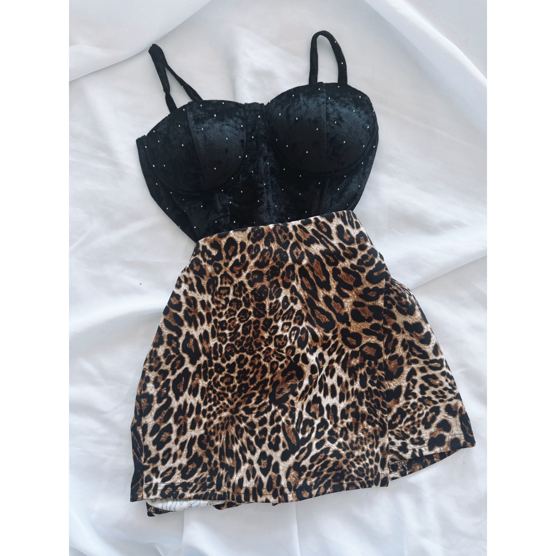 CONJUNTO FALDA SHORT PRINT + CORSÉ NEGRO